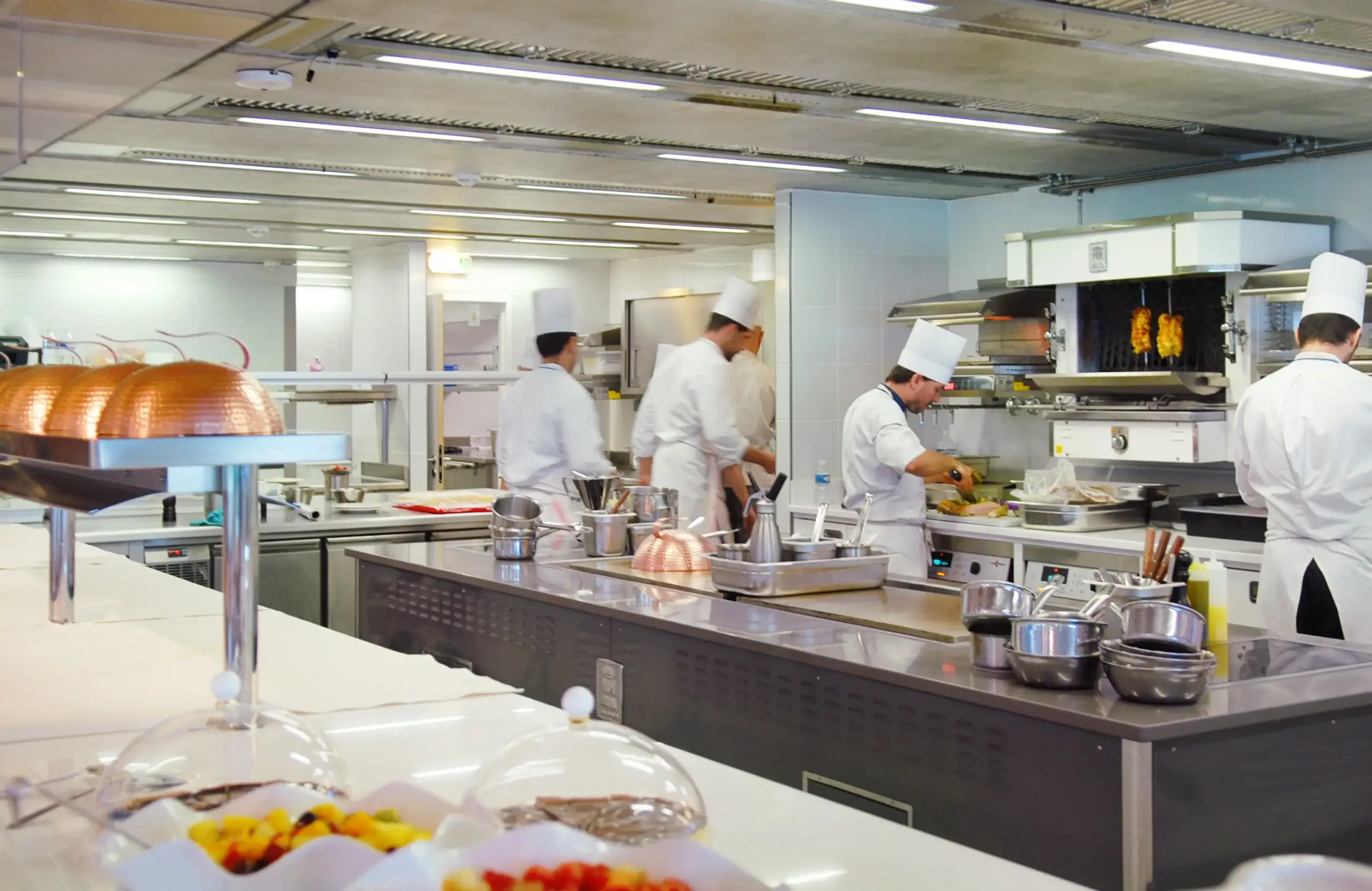 Pour répondre aux exigences culinaires du chef Gérald Passédat, ECHR a été sollicitée pour concevoir et réaliser les cuisines des quatre espaces de restauration du Môle Passédat. La cuisine centrale, située au 4ᵉ étage, est ouverte sur deux restaurants et s’intègre parfaitement à l’architecture du bâtiment. Cette configuration permet une interaction directe entre les chefs et les convives, offrant une expérience culinaire immersive.​